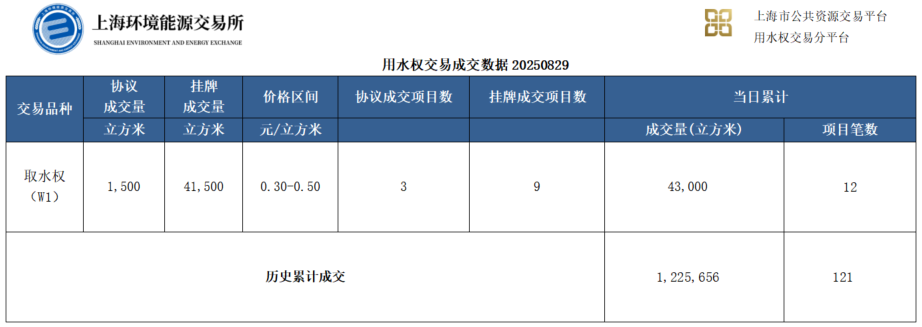 用水权交易成交数据20250829
