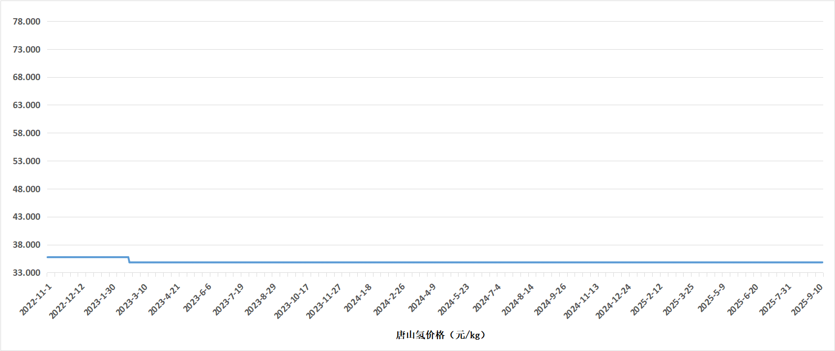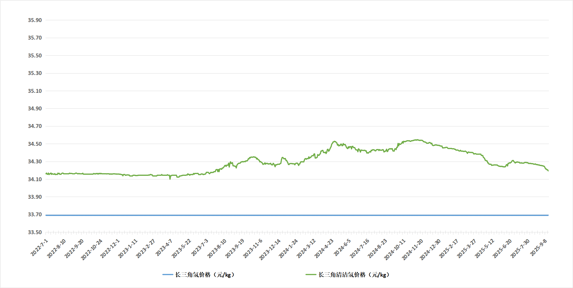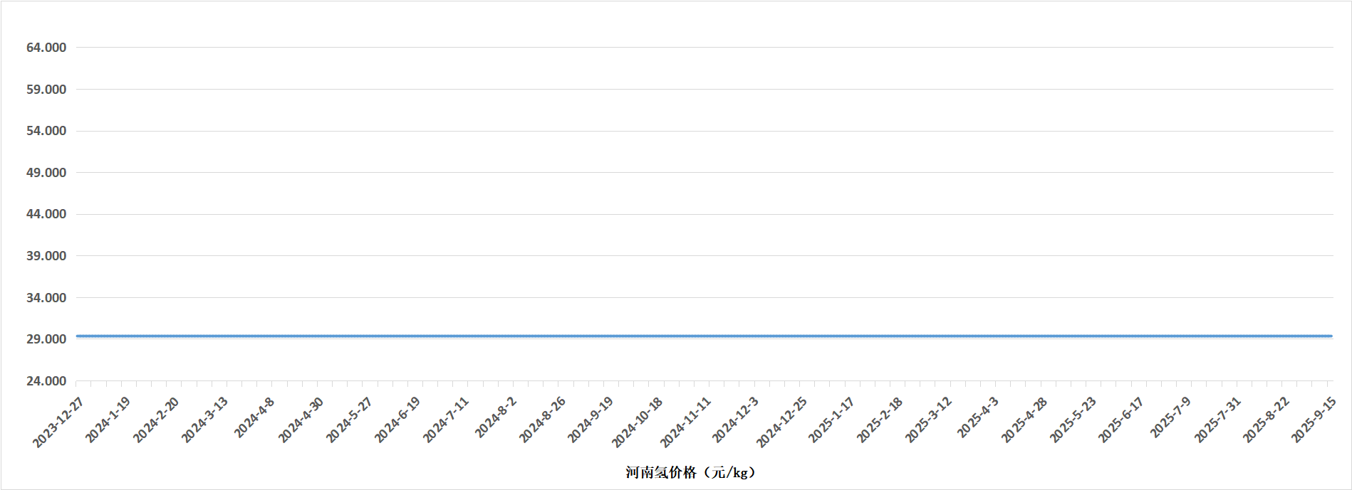 2025年9月15日,长三角氢价格为33.69元/公斤,长三角清洁氢价格为34.19元/公斤,唐山氢价格为34.83元/公斤,珠三角氢价格为38.13元/公斤,河南氢价格29.33元/公斤。