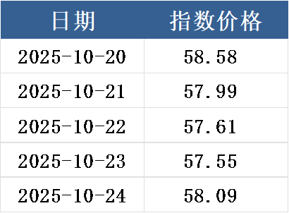 2025年10月20日至2025年10月24日,上海碳价格指数期初为58.58元/吨,期末为58.09元/吨; 下跌0.84%。指数周度数据如下表所示: